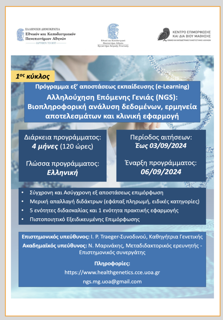 Επιμ. Πρόγραμμα “Αλληλούχηση Επόμενης Γενιάς (NGS) ” – ΚΕΔΙΒΙΜ ΕΚΠΑ 2024