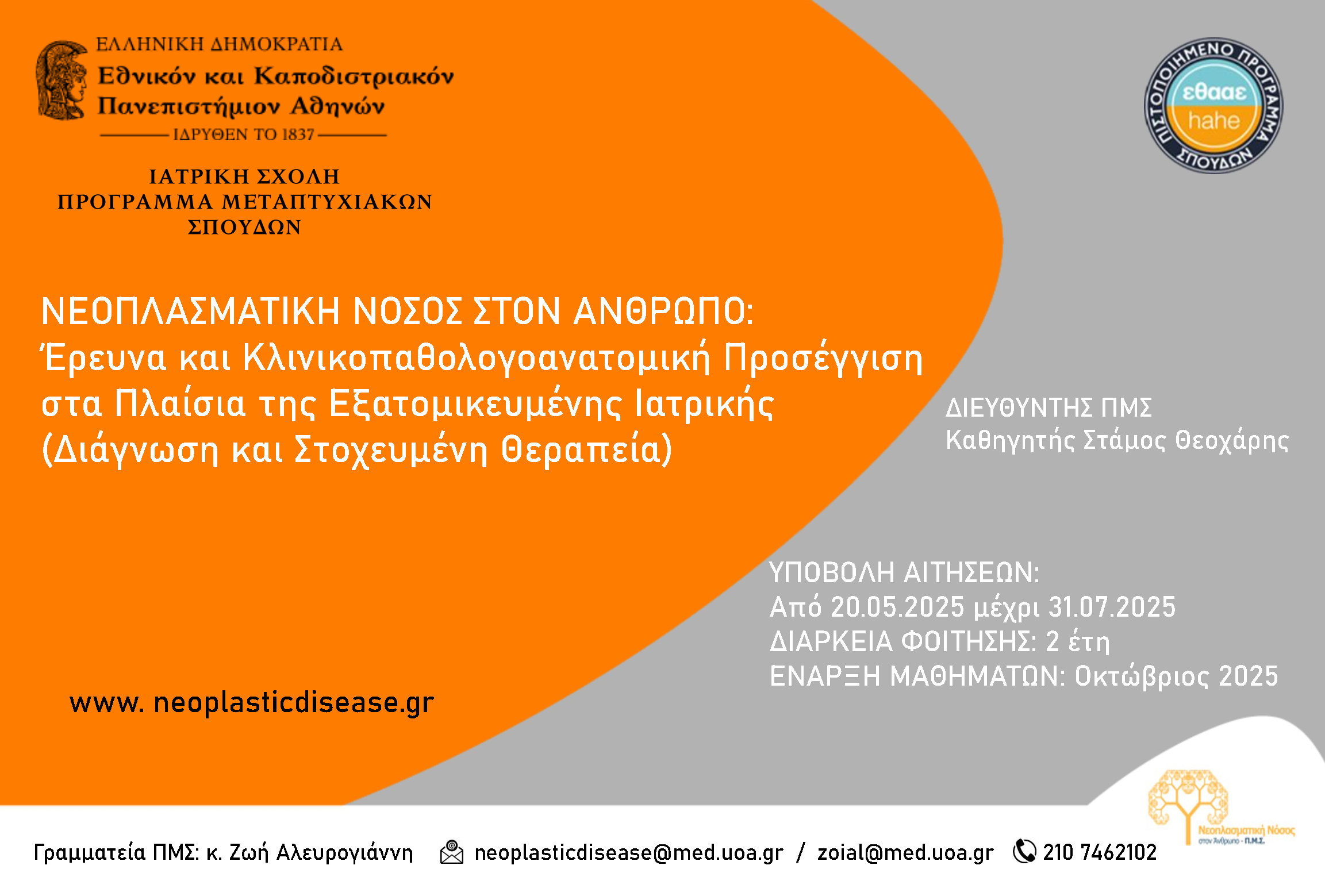 ΠΜΣ “Νεοπλασματική Νόσος στον Άνθρωπο” – Τμ. Ιατρικής, Ε.Κ.Π.Α. (2025)